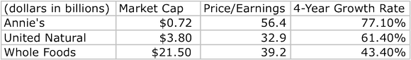 Companies such as Annie's, Whole Foods, and United Natural all have goals focused on providing healthier options. Of these options to choose from, it would appear that Whole Foods is the largest of the bunch and, as such, provides the greatest economic moat.