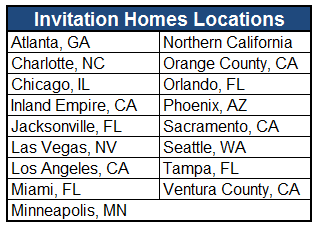 Invitation Homes operates in nine states and 17 areas across the U.S. ranging from some of the biggest areas in the nation like Los Angeles, California to smaller metro areas like Charlotte, North Carolina and Minneapolis, Minnesota: