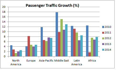The following graph demonstrates how the IATA's expectations for commercial airline profitability in 2013 progressively got better through the year. Meanwhile, its forecast for world economic growth actually declined over the period. In September of 2012, the IATA forecasted world economic growth in 2013 to be 2.5%, while the latest forecast from December of this year was just 2%. http://www.iata.org/whatwedo/Documents/economics/IATA-Economic-Briefing-Financial-Forecast-December-2013.pdf