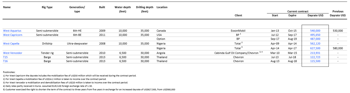 There is, therefore, effectively no risk of adversely changing fundamentals of the partnership over the next year. But, what about longer-term? After all, Seadrill Partners has two rigs that will be coming off of their current contracts in 2015. The partnership could certainly be adversely affected by weakening market fundamentals then. This is a valid argument, but there are signs that the market will be quite strong in 2015, at least for the types of rigs that Seadrill Partners operates. The two rigs that the partnership will need to recontract in 2015 are both ultra-deepwater floating rigs so that is the only market that I will discuss.