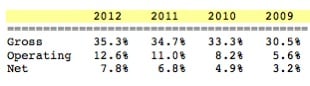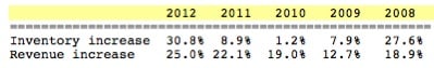 Inventory increases over four years were the model of impeccable inventory management, but slipped in 2012