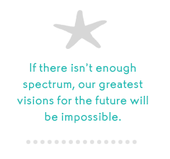 But the reality is that in the background, wireless networks look like that crowded capital of Maldives. Behind the scenes, they're bursting at the seams. All data travels over radio-frequency spectrum and the amount we can allocate is limited. For an comprehensive view of the United States' spectrum allocation, take a look at this chart. Beyond mobile, spectrum is allocated to radio stations, broadcasters, satellites, and a host of other uses.