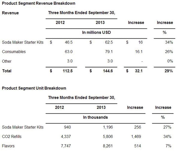 Source: SodaStream Q3 2013 earnings release.
