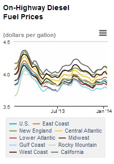 For the same period, average retail diesel prices dropped $0.024 for a national average of $3.886 per gallon. On a regional basis, West Coast prices made the deepest $0.038 dip, while East Coast prices fell just $0.010.