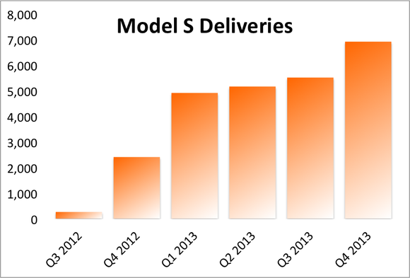 The number was somewhat of a surprise, considering that Tesla only guided for "slightly under 6,000 Model S vehicles." Assuming estimates for 5,900, Tesla's Q4 deliveries beat guidance by about 17%. That's Tesla's largest surprise for Model S deliveries ever -- by a solid margin.