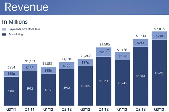 Facebook (FB +2.60%) had a great year in 2013, with shares going up more than 100% in the past 12 months. After a controversial initial public offering, the company eventually managed to prove itself as a genuine revenue-generating machine, with mobile advertising generating nearly $900 million in revenue in the third quarter of 2013.