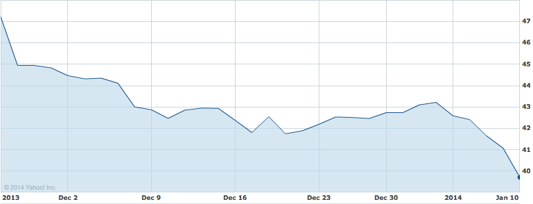 Shoe Carnival, on the other hand, had been the strongest performer until the beginning of January, when things quickly turned bad; the stock began to fall along with the overall market at the beginning of 2014, but as the market turned upward, the stock continued to fall. To make the situation even worse, Shoe Carnival cut its fourth-quarter outlook sharply; it now expects to earn $0.03-$0.06 per share on revenue of $203 million-$205 million after previously estimating that it would earn $0.18-$0.22 per share on revenue of $215 million-$219 million. This was an incredibly bad reduction, so I believe Shoe Carnival is not a good investment in today's market.