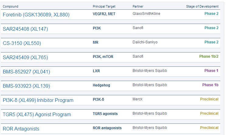 XL518 is a signalling pathway inhibitor which could have multiple applications in a variety of cancers. The drug is being tested first in a phase 3 trial as a late-stage skin cancer treatment in combination with Roche's Zelboraf.