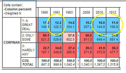 The reason we're going back to 1991 is that 1991 was the trough for the American public's confidence in banking and financial institutions. Well, it was, at least, until 2010.