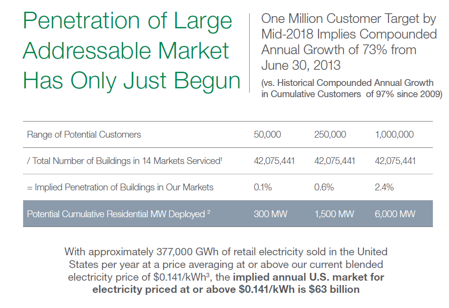 SolarCity is, by far, the biggest player in this field; in fact, it's larger than its next eight largest competitors combined. Yet, despite all of the huge waves that you're claiming distributed solar has made, the company's ambitious growth targets for 2018 will only put them at 2.5% of the potential market in just the 14 states in which it operates.