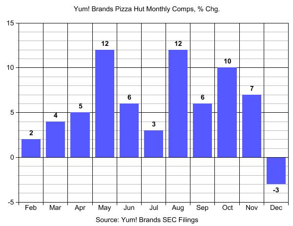 Which puts the performance of Yum!'s Pizza Hut business into perspective and raises some concern. While it has reported lumpy comps for the chain all year long, they've at least always been growing. In December, however, they suddenly took a turn for the worse, falling 3% when analysts had anticipated a near-6% increase.