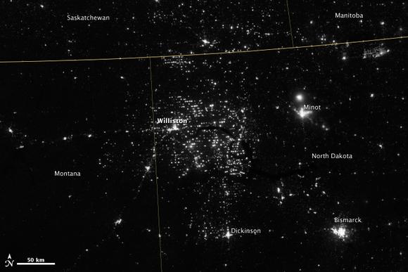 Still, flaring is only part of the story behind this out-of-this-world sight. Oil and gas drilling pads run around the clock and need to be brightly lit up for safety. Further, because drilling often happens in remote regions, temporary housing is often built close to drilling sites. These also light up the night sky and are visible from space as the following picture of Texas shows.