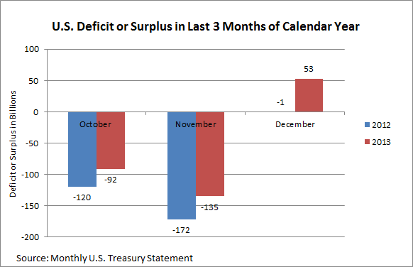 Look at that! The U.S. Treasury ran a surplus in December 2013.