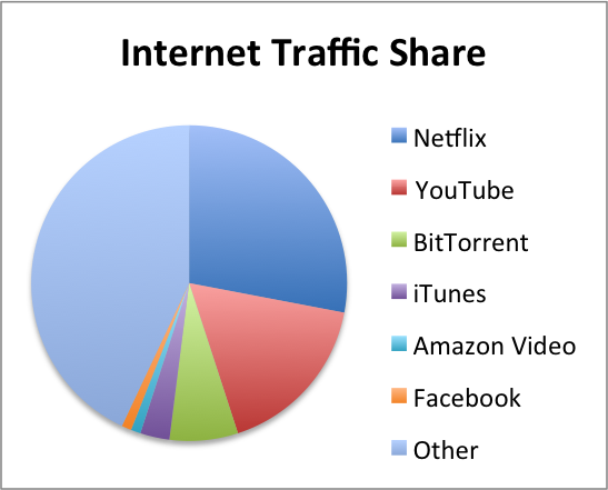 At 28% of all traffic in the U.S., the greatest single user of the Internet during peak times is Netflix (NFLX +2.38%).