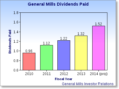 Stock performance aside, the company has been paying dividends uninterrupted and without reductions since 1898 for an incredible 116 consecutive years of payments; this is why it has been given the nickname "Generous Mills." General Mills has raised this dividend for 10 straight years, with the most recent being a 15.15% increase in July from $0.32 to $0.38 per quarter; this is a yield of around 3.13% at current levels. General Mills has raised its dividend by over 58% since fiscal 2010 and the company generates ample free cash flow so the dividend hikes can continue at a rate like this for years, if not decades.