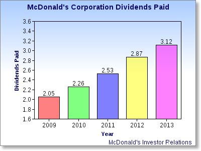 Even considering the declines, McDonald's is still home to one of the best, growing dividends in the market today. In fact, the company has raised its dividend each and every year since it paid its first dividend in 1976; the most recent increase on Sept. 18 put the streak at 37 consecutive years of increases. Since 2009, McDonald's has raised its dividend by more than 52%, showing that it is still as dedicated to its shareholders as ever.