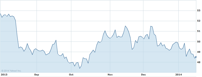 The decline in Coca-Cola's stock began immediately after it reached its 52-week high on May 16, 2013. Coca-Cola had missed revenue estimates in February but continued higher, only to fade in June; it then continued its decline after it reported a mixed quarter in July. The July report was especially bad because it showed that profit fell by 4% due to weaker-than-expected sales in Coca-Cola's home market, North America. From May 16 to Oct. 7, the stock fell 14.02%, but it has since rebounded and currently sits about 8.6% below its 52-week high.