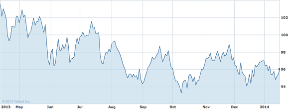 McDonald's has dealt with several issues since it reached its 52-week high on April 12, with the most common being weaker-than-expected comparable-store sales; here's a table showing how it has done on this metric since April, with a 7.27% decline from April 2013 to mid-January 2014: