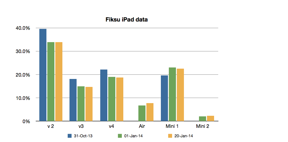 Fiksu tracks usage of unique devices running apps that use its analytics system. With millions of records, it has a huge database. It provides charts to show relative usage over time. While there is no assurance that this gives a complete view of systems sold, we can assume it to be a fairly accurate sampling, and if there is indeed some bias, most likely this bias is consistent over time.