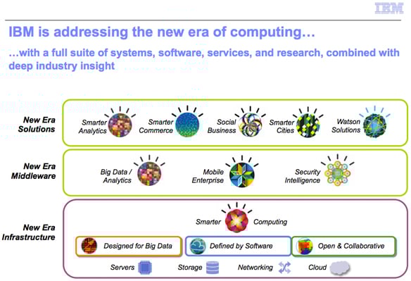 However, Big Blue is also well-known in the industry for being able to reinvent itself. The company sold its profitable PC business to Lenovo (LNVGY +0.00%) in 2004 to focus on software solutions and x86 servers. Lenovo then used IBM's hardware to become the world's largest PC manufacturer. Now, IBM may be interested in selling its low-end x86 server business, with Lenovo again as potential buyer. Once more, a new Big Blue is in the making. The new IBM is expected to be more focused on cloud computing, a space dominated by services such as Amazon's (AMZN 0.10%) Web Services. But how does IBM plan to win market share in this highly competitive market?