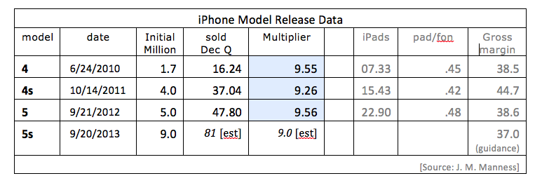 Another indicator may also be reasonable, perhaps even a low number. Consider recent iPhone releases and the number of sales for the initial weekend, compared to sales for the December quarter.