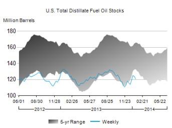 Distillates supplies, which include diesel and heating oil, dropped 3.2 million barrels (2.7%) for a second week of declines. Distillates demand for the last four weeks is up a seasonally adjusted 5.2% from the same period last year. In the past year, distillates inventories have dropped 9.2%.