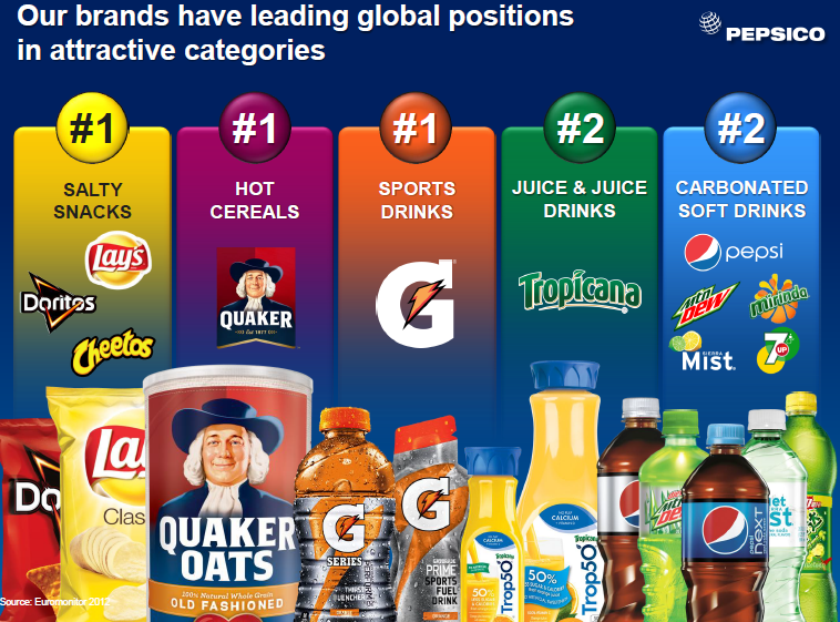 These are just some of the 22 flagship brands each earning $1 billion annually for PepsiCo. (Fun fact: Those coolers of Gatorade poured over the victorious coach... also a brand owned by PepsiCo.) Do your guests have more sophisticated tastes? How about some hummus instead? PepsiCo owns Sabra hummus, too.