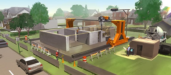 The project, dreamed up by engineering professor and 3-D printing expert Behrokh Khoshnevis, is partially funded by the Office of Naval Research and has been in development for roughly a decade. Several years ago, Caterpillar (CAT +0.45%) joined the effort by lending its engineering talent to Khoshnevis' team. By last fall, Khoshnevis' start-up, Contour Crafting, had used 3-D printing tools to build a six-foot-tall wall that could function as the exterior of a modern home. Its ultimate goal, of course, is more ambitious: a 2,500-square-foot house, laid down in 24 hours.