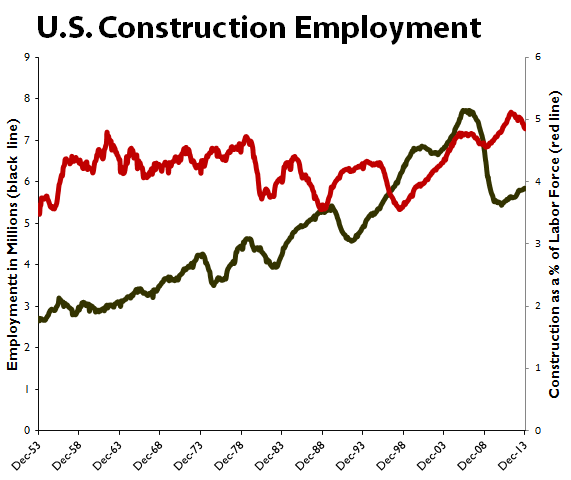 The downside to this new technology, as seems to be the case with the eventual 3-D cannibalization of traditional manufacturing, is that it puts millions of jobs at risk both here and abroad. The U.S construction industry has historically employed at least 4% of the labor force, and more often employs close to 5% -- that's a lot of labor to lose in an economy that's already finding it hard to provide new jobs for those put out of work by the Great Recession: