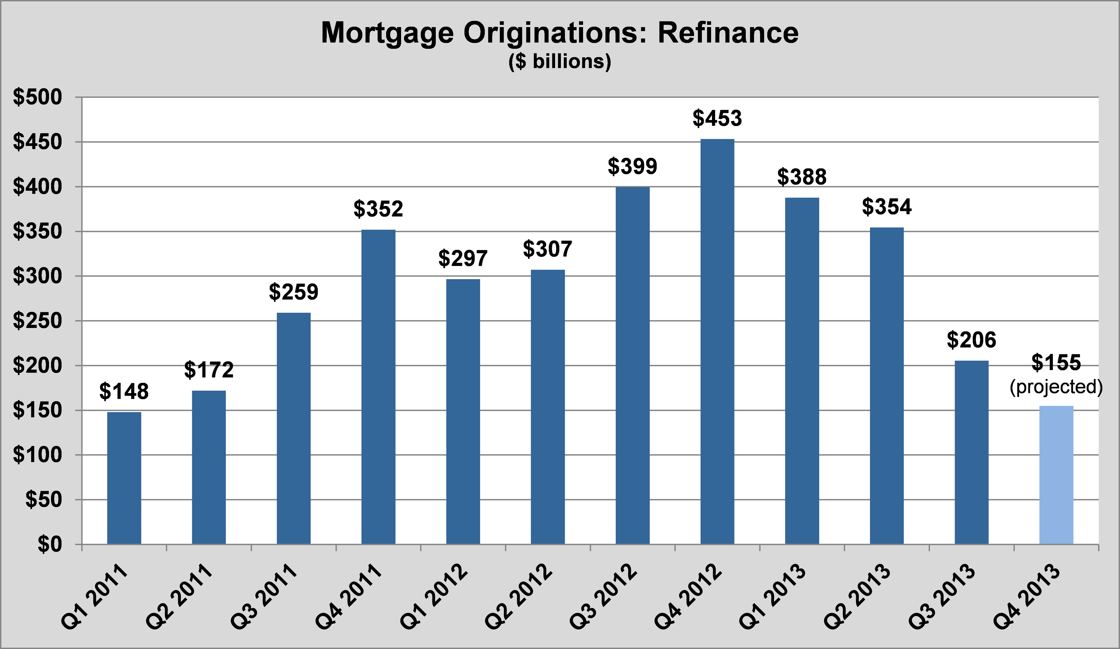 The low interest rates provided a number of economic benefits, including a boom in refinancing that helped both consumers and banks like Wells Fargo and Bank of America. Yet with rates on the rise, refinancing slowed to a screeching halt in the third and fourth quarters of 2013: