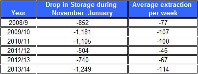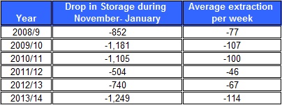 But on a yearly scale, the EIA estimates the demand for natural gas will decrease by 2.2%, mainly due to lower heating degree days and declines in natural gas usage in the power sector. This could mean that during 2014 natural gas consumption will drop back down to 2012 levels.