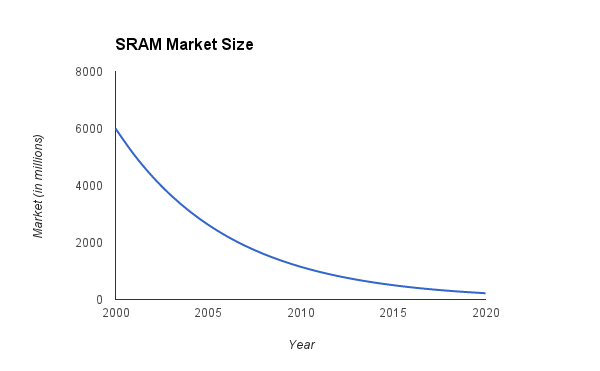 The SRAM market shrunk from $6 billion to $700 million between 2000 and 2013
