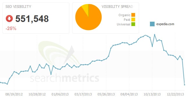 Expedia lost 25% of its search visibility after Google's punishment | Source: Searchmetrics