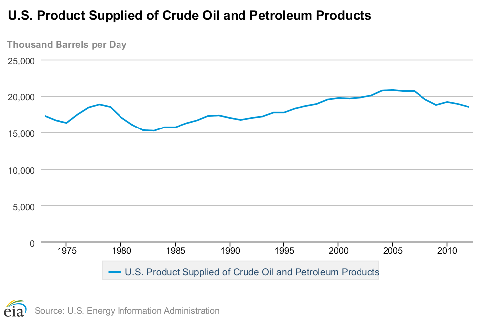 Ever since 2005, total U.S. oil demand has been on a pretty steady decline. Between then and 2012, the U.S. saw a reduction in total oil supplied of more than 2 million barrels per day, and had cut consumption all the way to levels not seen since the early 1990s. According to the International Energy Agency -- not the U.S. Energy Information Agency, although their acronyms are really close --total U.S. oil demand increased by almost 400,000 barrels per day, which equates to about a 2% increase.