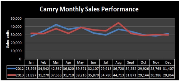 Despite supply constraints Ford sold 295,280 Fusions in 2013, up 22.4% from 2012, while Nissan Altima sales increased by 5.9% to 320,723 units. With Ford adding capacity for Fusion, sales could go even higher this year. Additionally some big launches are lined up for this year including a revamped Hyundai Sonata, a new Chrysler 200, and Subaru Legacy. No wonder the plain looking Camry is feeling the heat, and mulling over design changes.