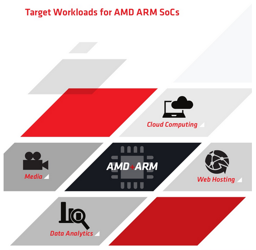 AMD is aiming its ARM chips straight at the heart of traditional workloads for virtualized systems, like cloud computing and web servers. Image source: AMD marketing materials.