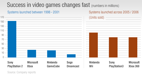 The console wars have long been the equivalent of corporate high-stakes poker. Launching a new game system can cost billions of dollars, and market share shifts dramatically in the four to five years between each generation of systems. Yesterday's winner can fade rapidly if it's priced too high, its launch games are limited, or any number of other possible missteps.