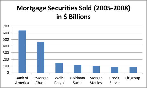 Perhaps, the best indicator of potential legal liability at various banks is the extent to which the bank participated in the sale of mortgage-backed securities in the pre-crisis period.