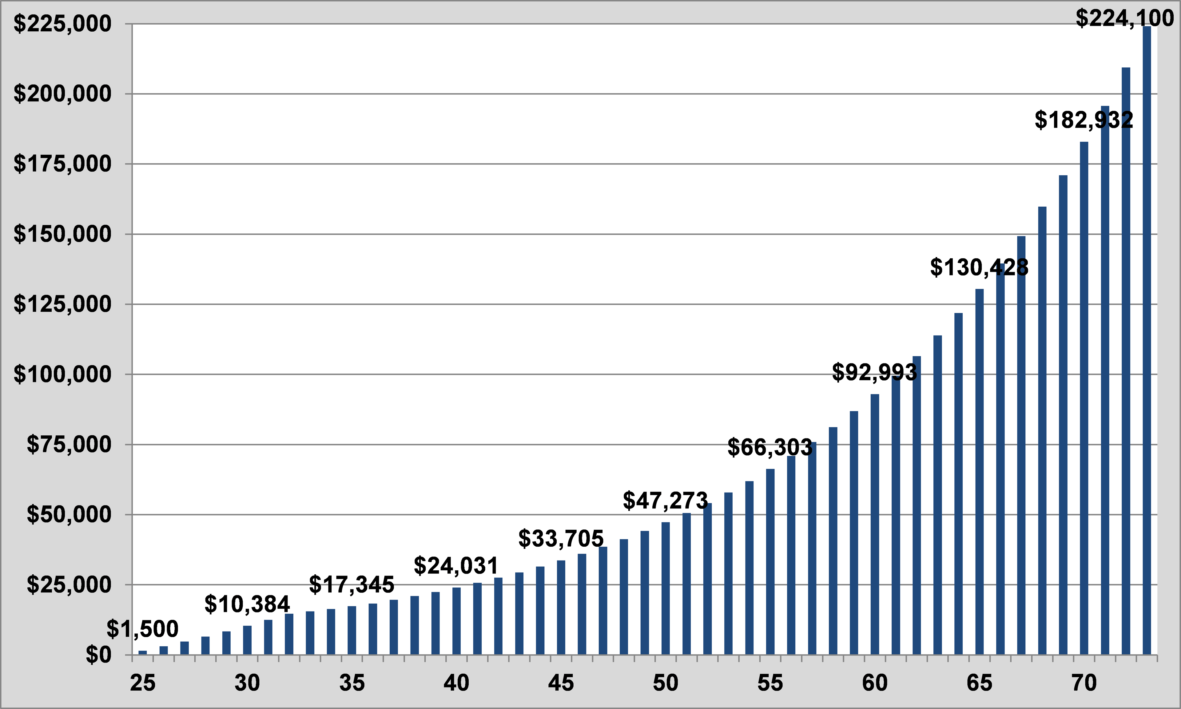 Although $15,000 doesn't sound like a ton of money when considering what is needed to save for decades of retirement, it could actually result in an incredible amount of savings over the course of a lifetime.