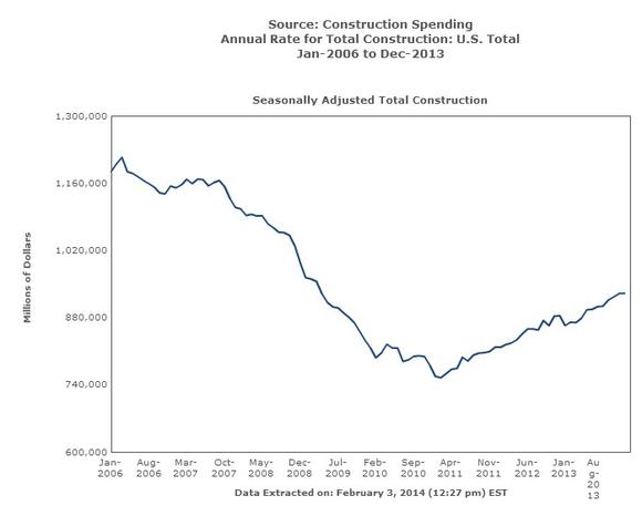 For all of 2013, overall construction spending was up 4.8% compared to 2012..