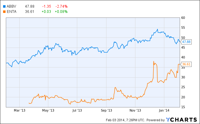 While AbbVie's announcement reflects well on the company's prospects for 2014, its quarter earnings report released the same day showed a decline in both net income and sales as compared to a year prior. The 2014 forecast of full-year earnings was also slightly behind analyst predictions at $3-$3.10 forecast as compared to $3.13/share predicted. These numbers may have contributed to the very minimal bump in price that AbbVie experienced following the announcement of its quite impressive clinical data.