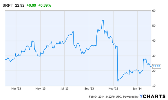Sarepta's fate, however, was partly tied to that of its rival Prosensa -- a former partner of big pharma company GlaxoSmithKline -- and its DMD drug drisapersen. Following a failed late-stage study in September for drisapersen, regulators began questioning the biomarker (dystrophin) used in the Phase IIb clinical study of eteplirsen that had so many Sarepta investors excited. While this does not reflect on the statistically significant clinical improvement seen by patients, it does still strike uncertainly in scientists and investors alike.