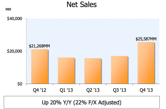 For the first quarter of 2014, Amazon is expecting revenue of $18.2 billion-$19.9 billion. This is equivalent to a growth rate of 13%-24% from the year before, which is well below the growth rate experienced by Amazon in the third quarter of 2013, when the company saw its top line increase by 25%, which helped raise the market's expectations.