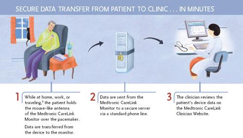 Medtronic, the largest medical device maker in the world, is also a key name to watch in telehealth. Several of Medtronic's insulin pumps, glucose monitors, and heart devices can transfer patient data over the Internet to a secure server on its CareLink website. In its cardiac devices, Medtronic's OptiVol Fluid Status Monitoring system can detect fluid buildup in the thoracic cavity and send a report to the patient's doctor in a timely manner.