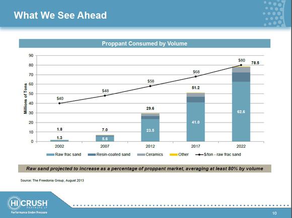 As the following chart shows, proppant volume consumed is expected to increase every year: