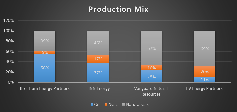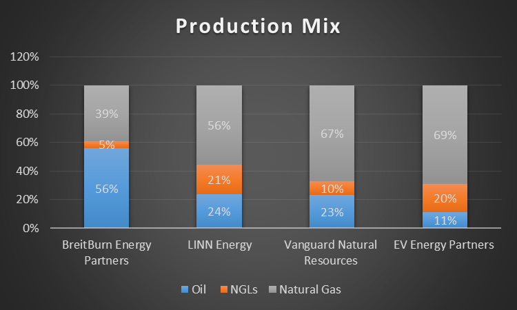 The LinnCo led deal to acquire Berry Petroleum was well worth the wait for investors. The deal vastly improved the company's production mix and weighted the company much more toward higher value oil. Before the acquisition of Berry Petroleum, LINN Energy's production mix was more heavily weighted toward natural gas as the following chart shows: