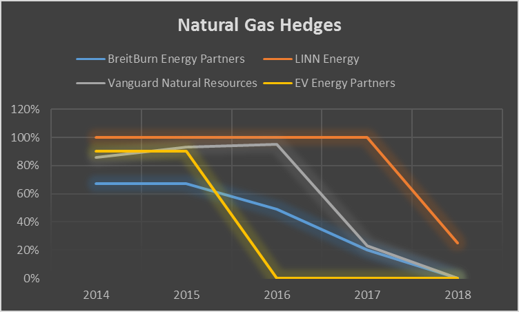 Looking at oil production we do see a bit of a different story as LINN Energy isn't yet 100% hedged, however, that is because the company just closed its deal for Berry Petroleum.