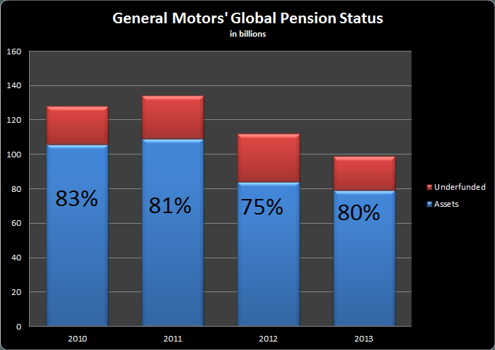 Percentages are GM's funded status, assets/total obligation. Source: General Motors' fourth-quarter presentation.
