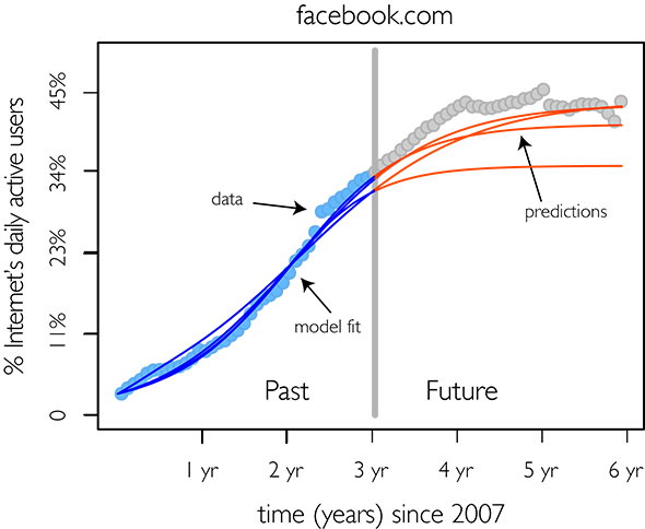 The most fascinating thing in this study is that even given external shocks, like a presidential election, a bump in marketing, or even competitive upstarts, the models end up reverting to their predicted destinations in the long-term, whether that's at a sustainable level of users or zero. And this is why Facebook is different than MySpace.