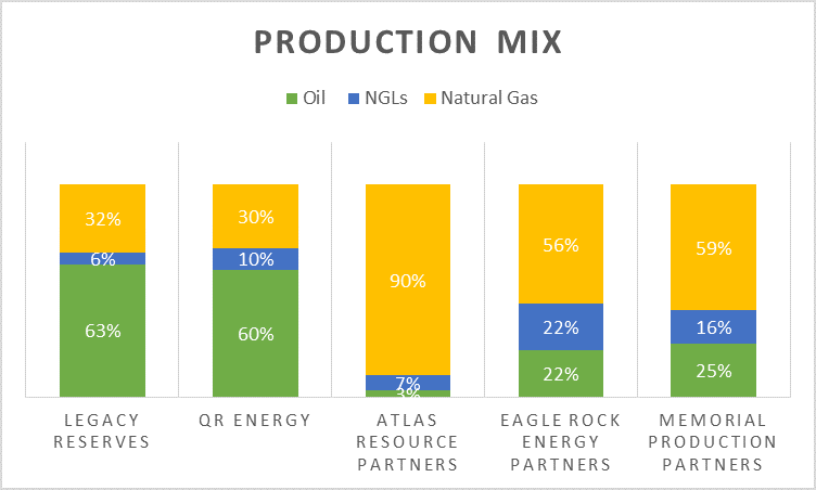 In the following chart comparing Eagle Rock Energy Partners to some similar-sized peers, we see that the company's production is fairly balanced.